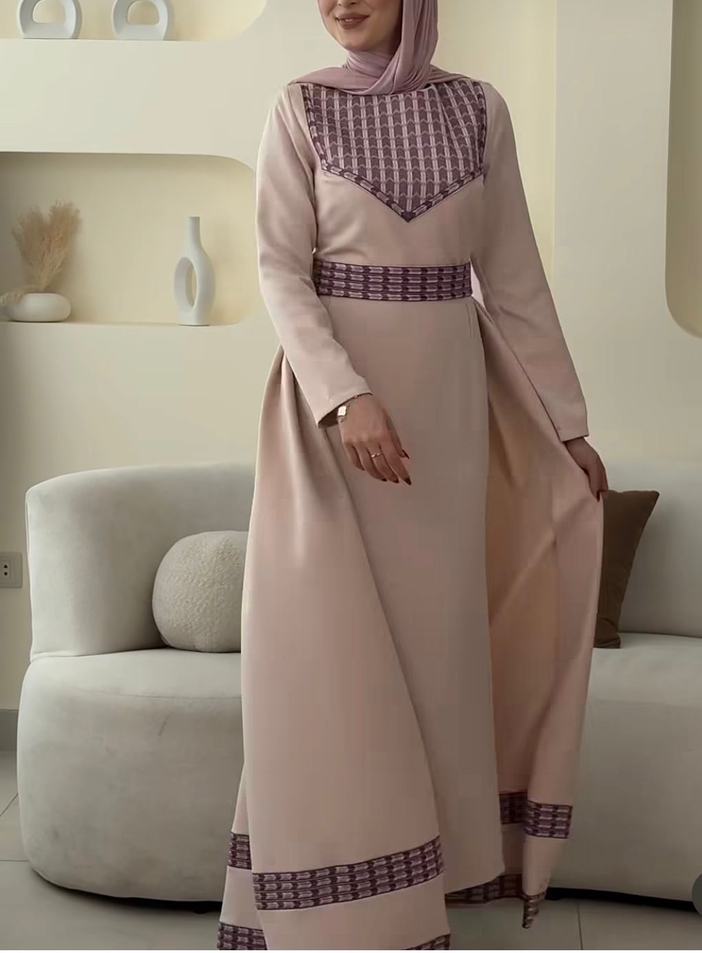 Elegant Cream Color Dress with Pinkish Embroidery and Detachable Back Skirt