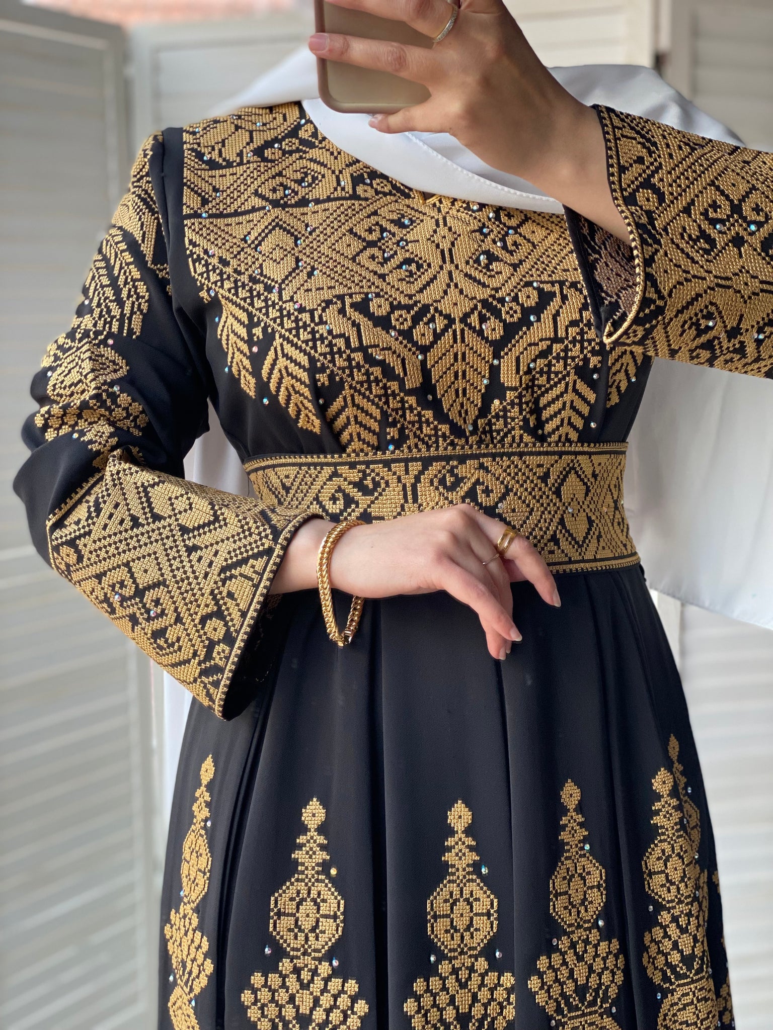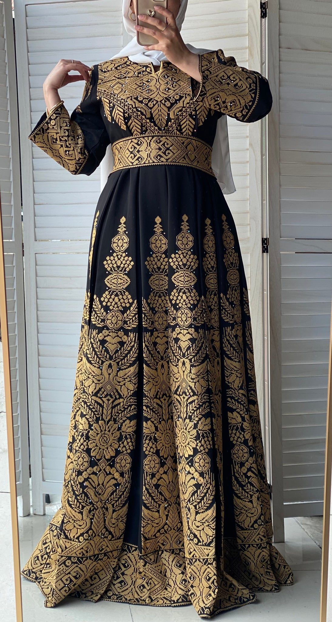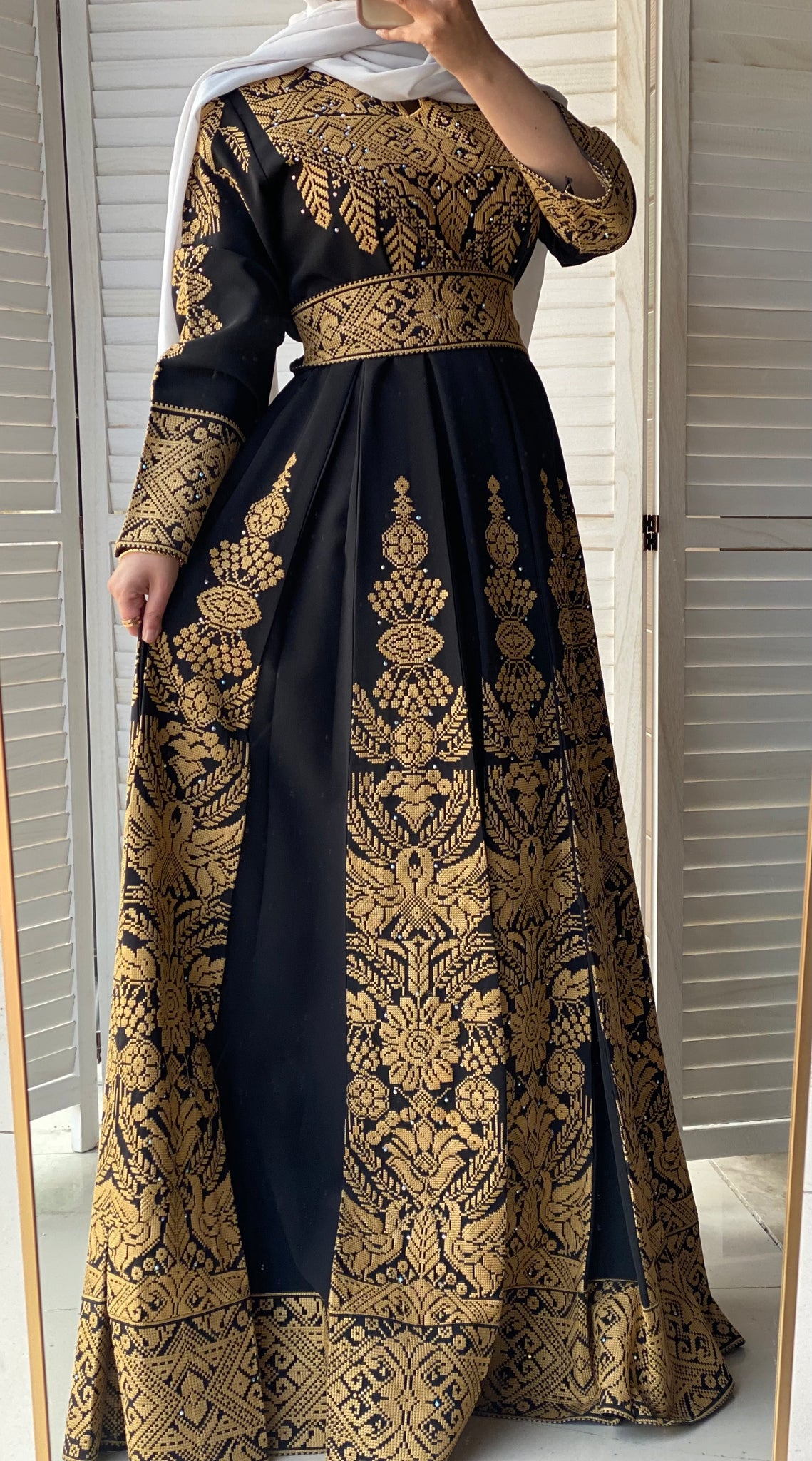 Super Elegant Black Cloche Dress with Golden Embroidery