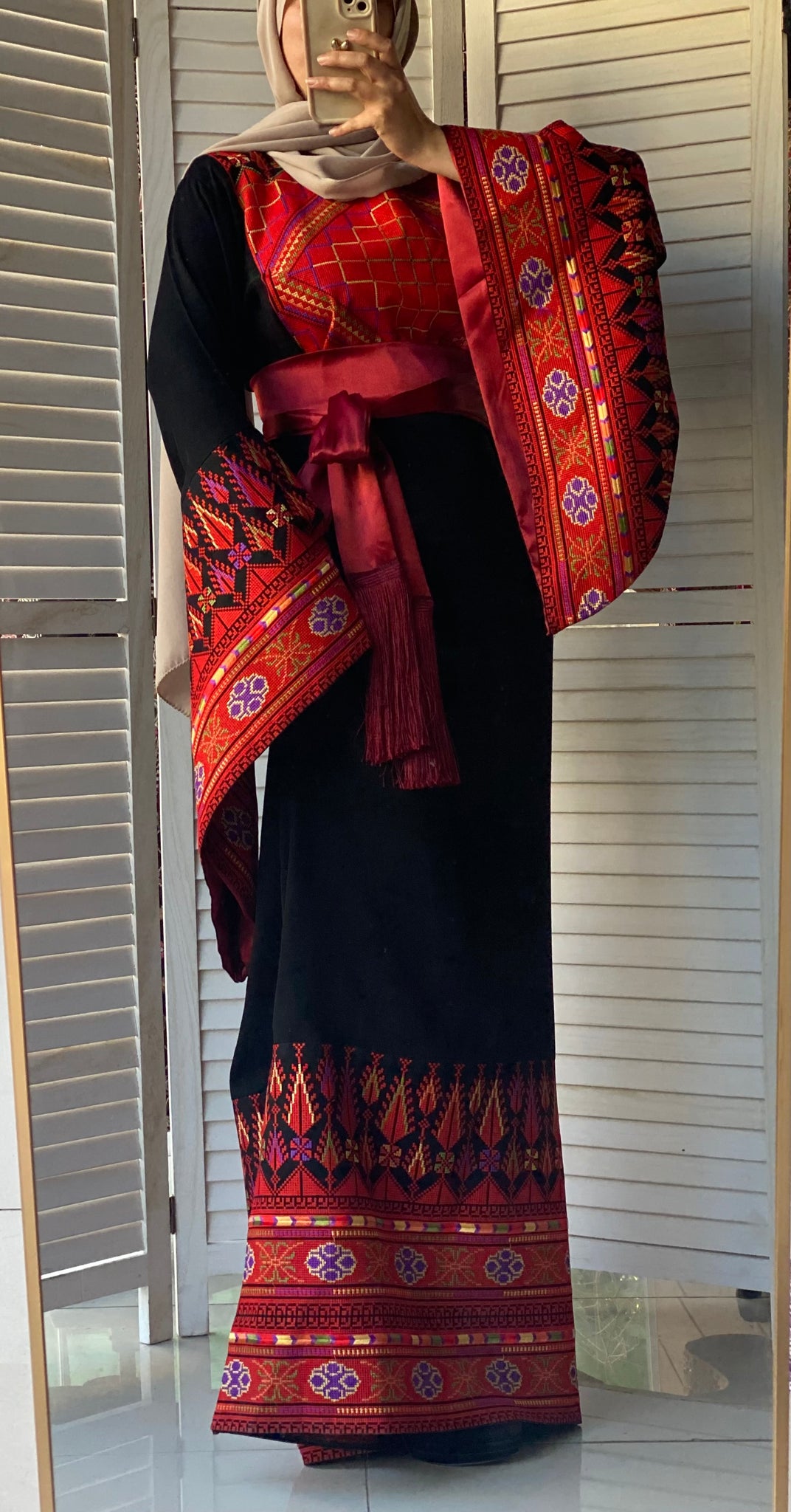 Very Unique Radan Sleeves Black and Red Thobe with Dense Embroidery and Satin Details