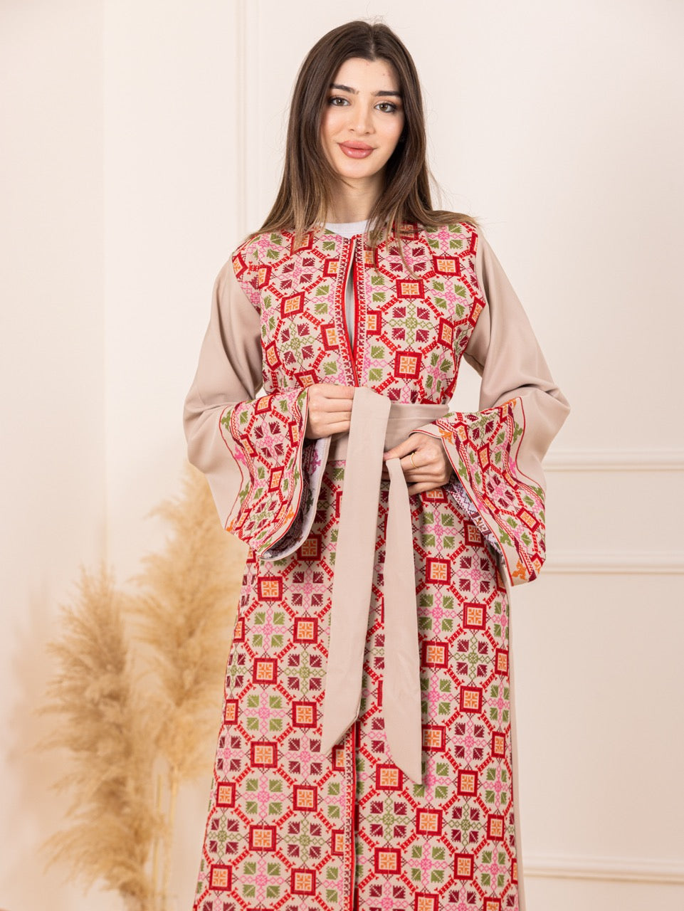 BEESAN Elegant Beige Palestinian Embroidered Abaya