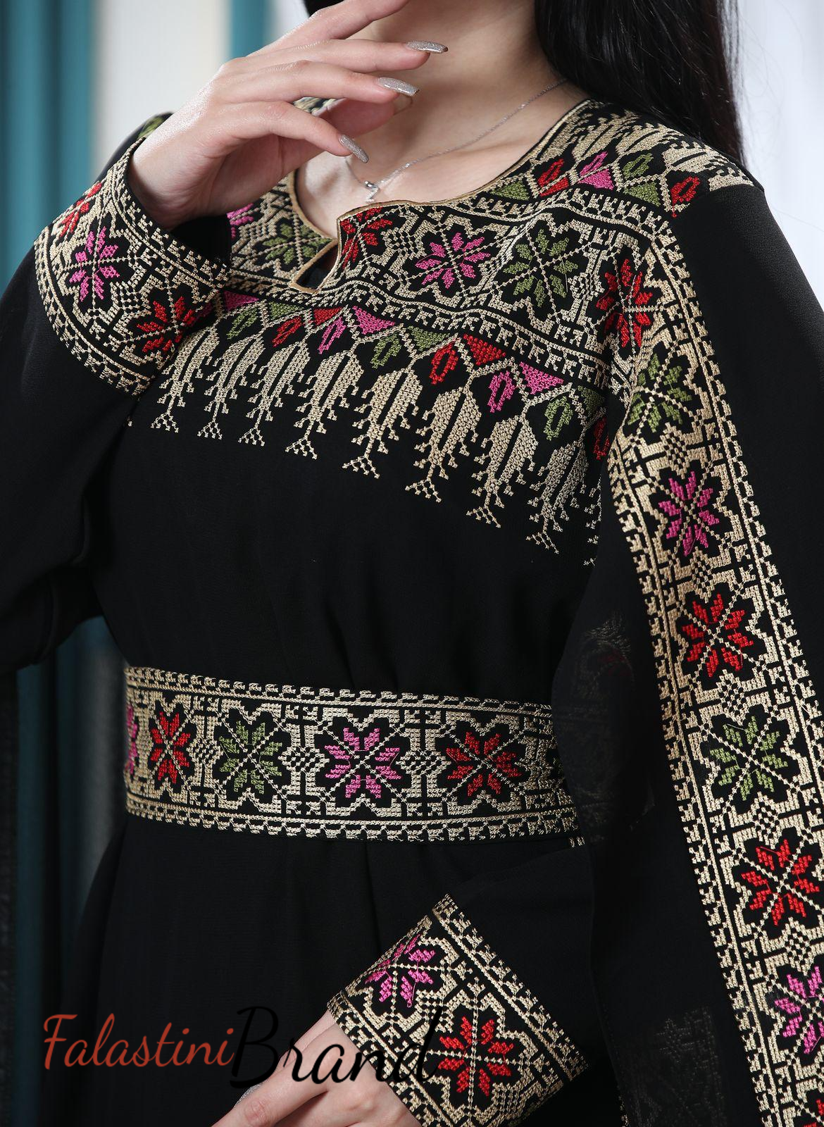 Amazing black base Palestinian embroidered dress