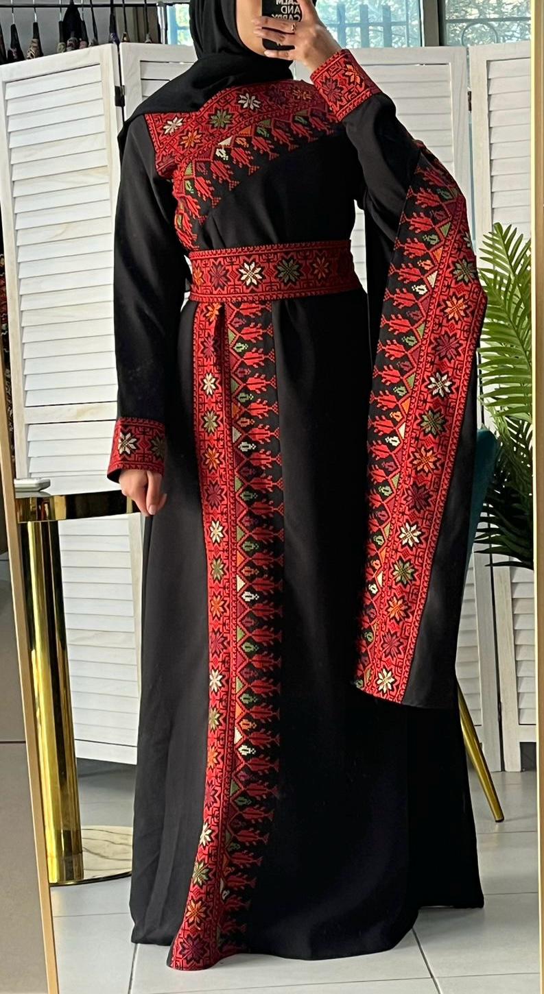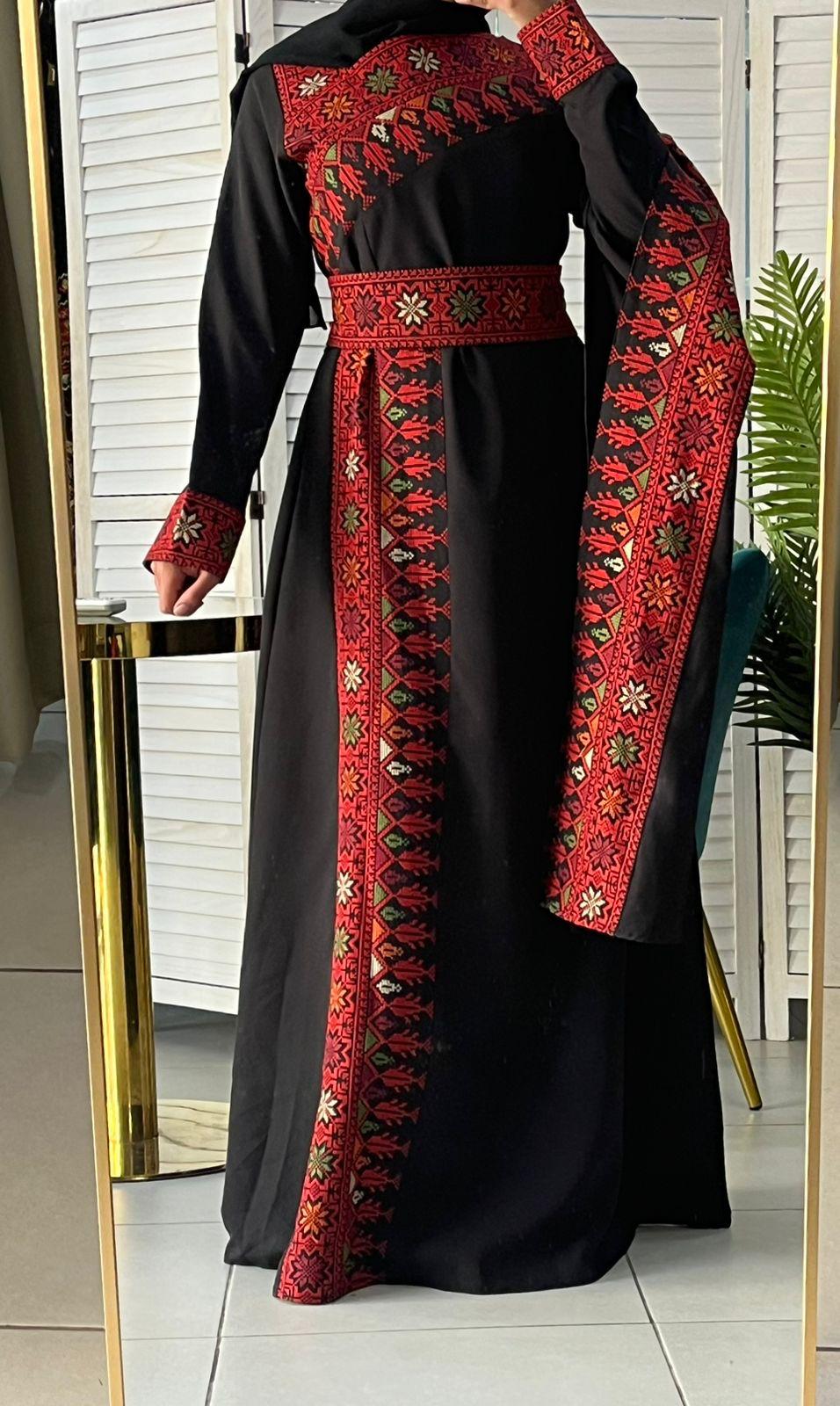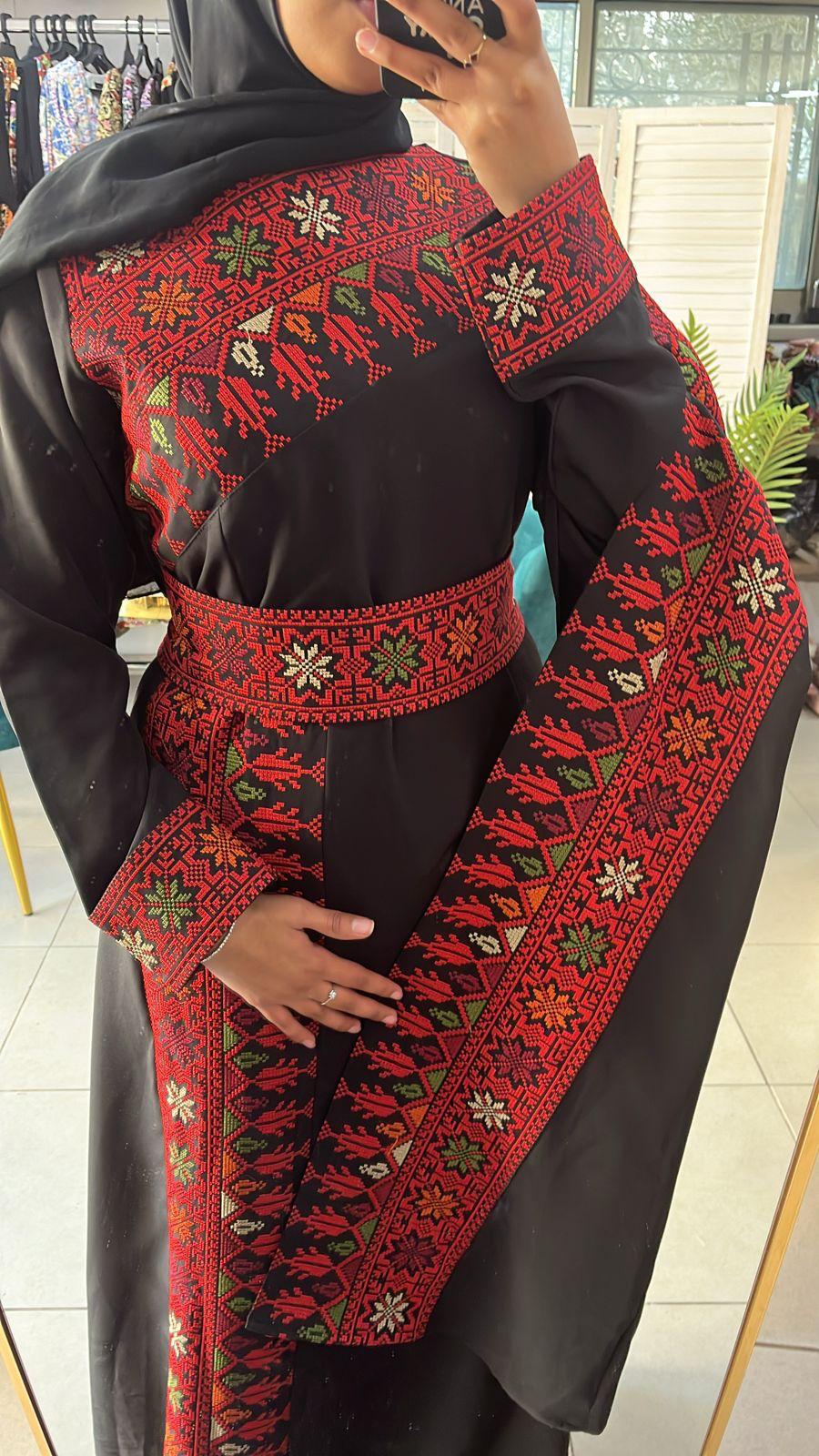• Amazing black base Palestinian embroidered dress