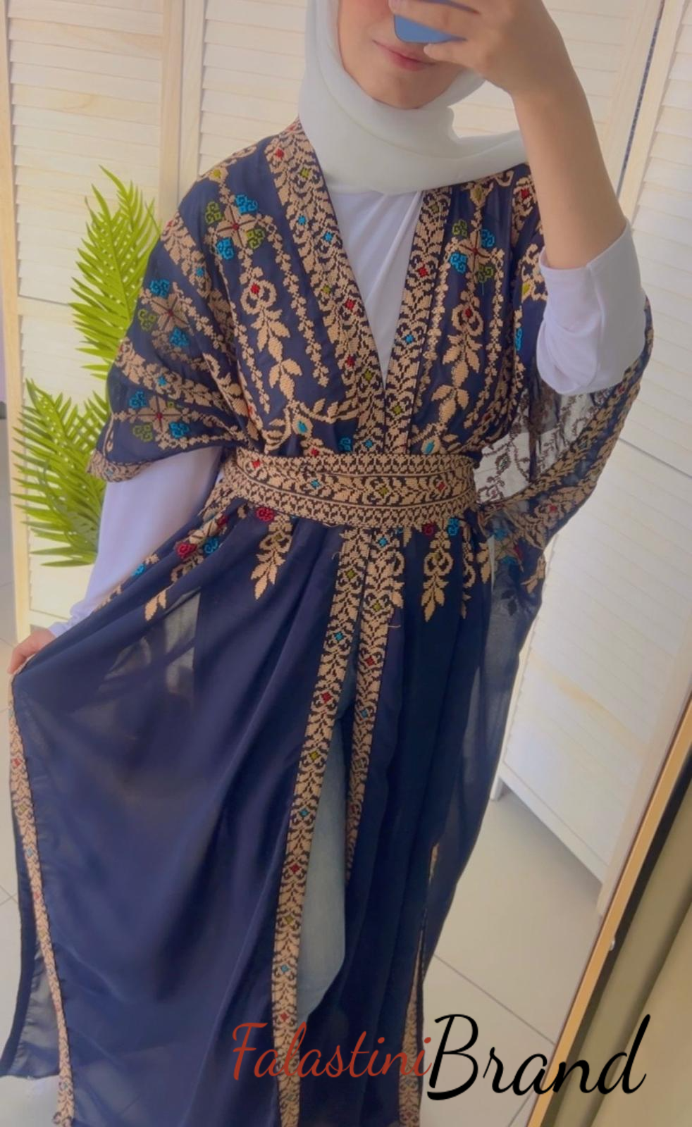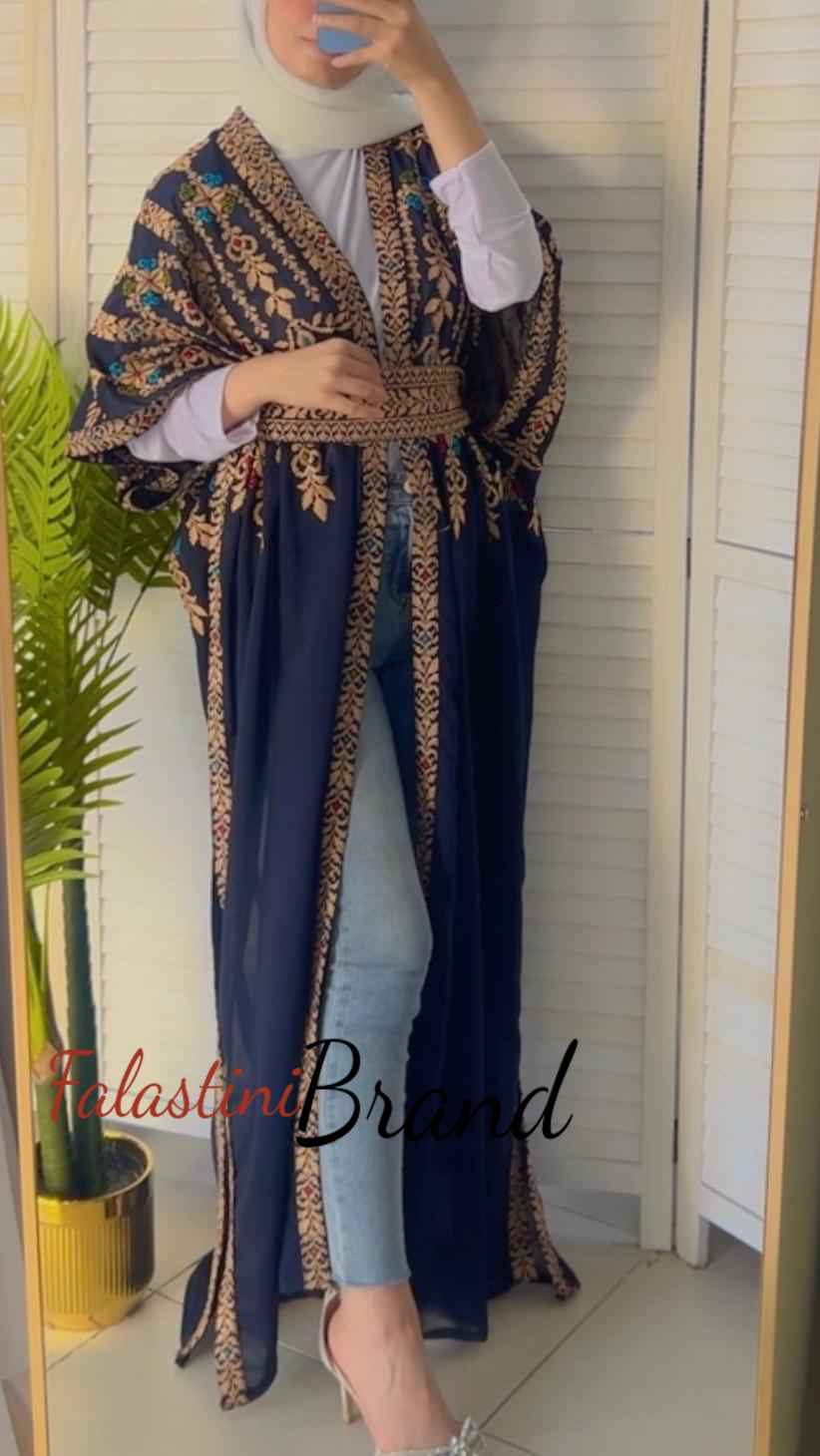 Lightweight chiffon open front Abaya Caftan with amazing embroidery art