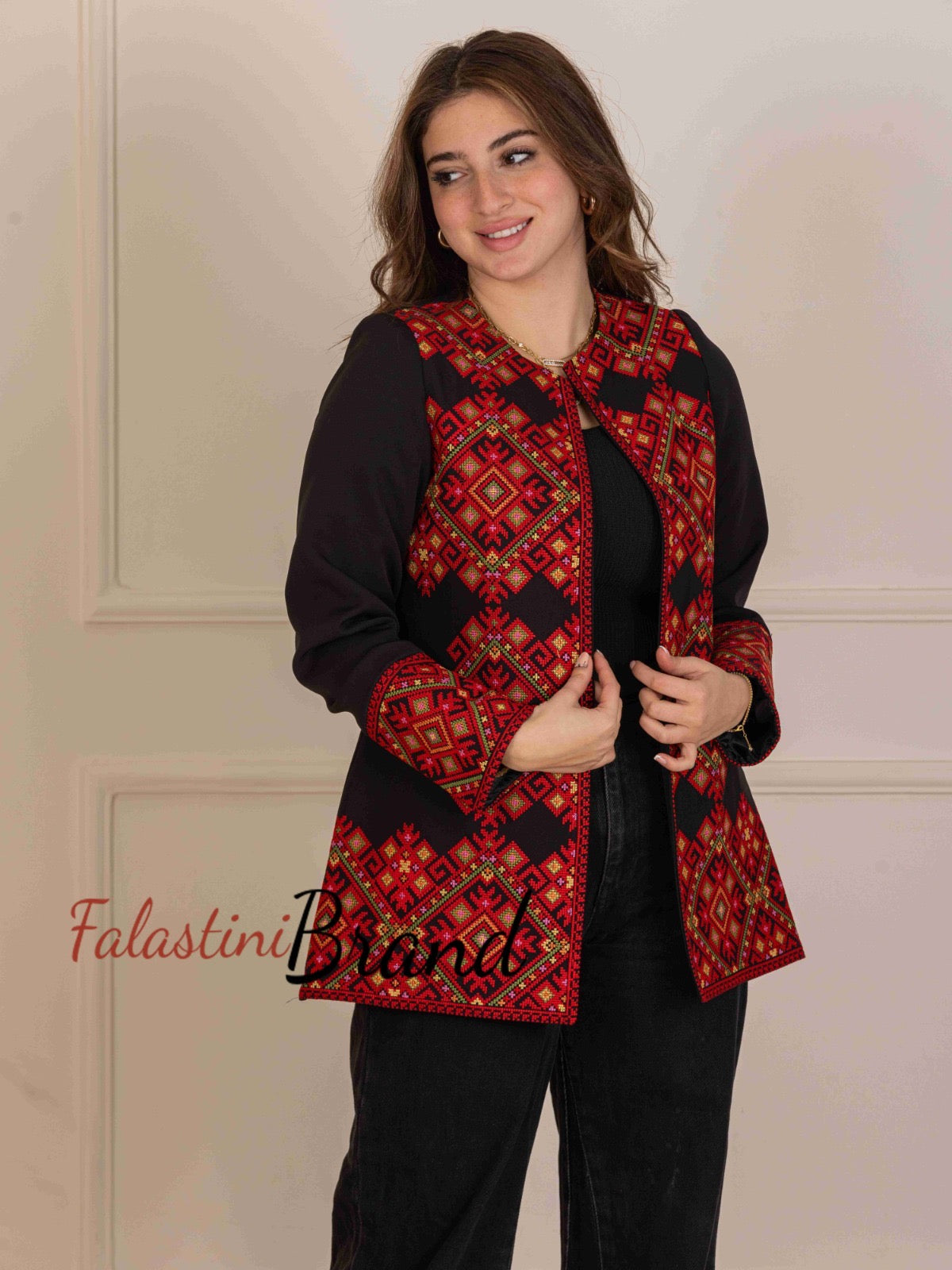 Palestinian Black and Red Diamond Embroidered Jacket