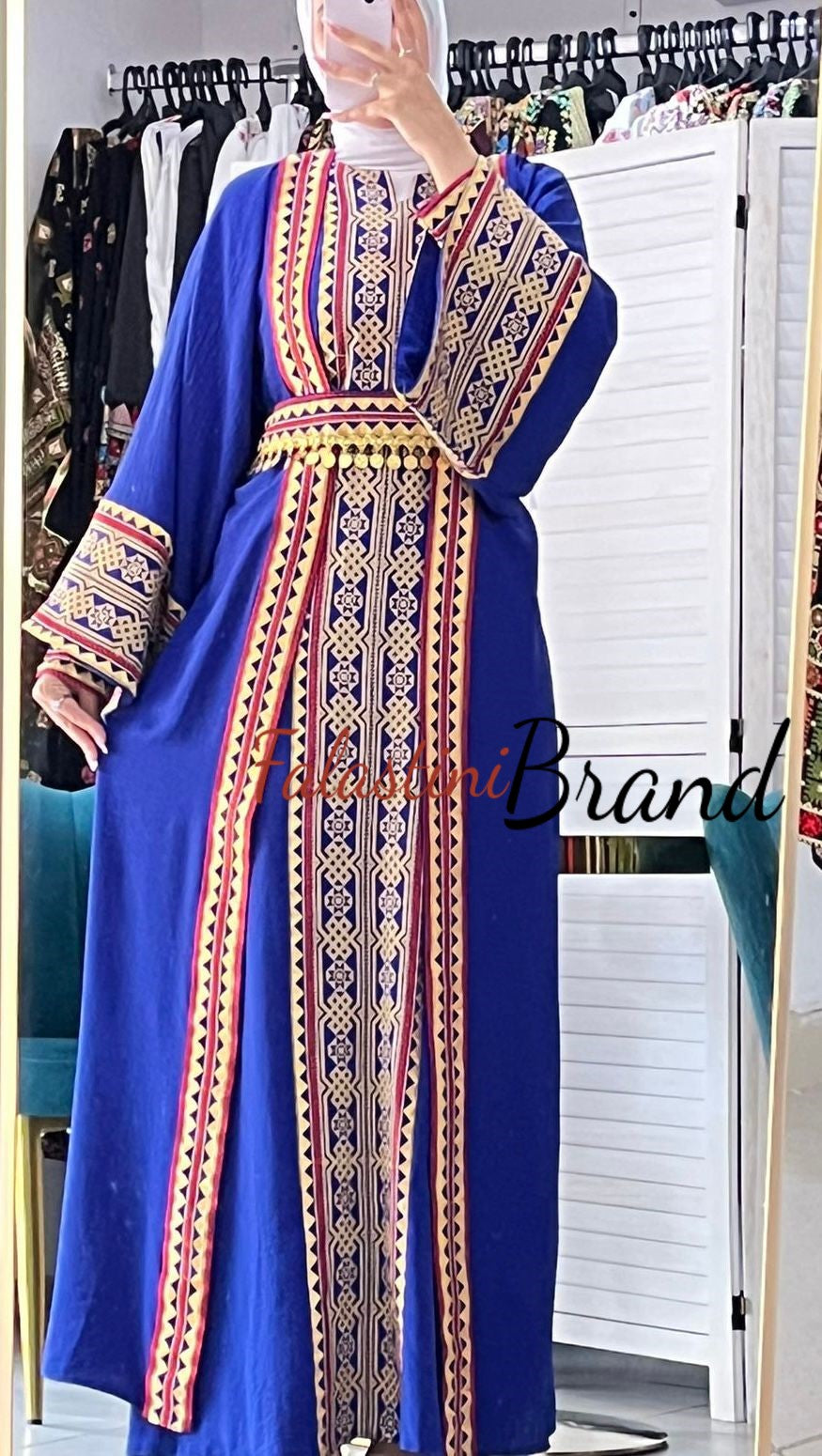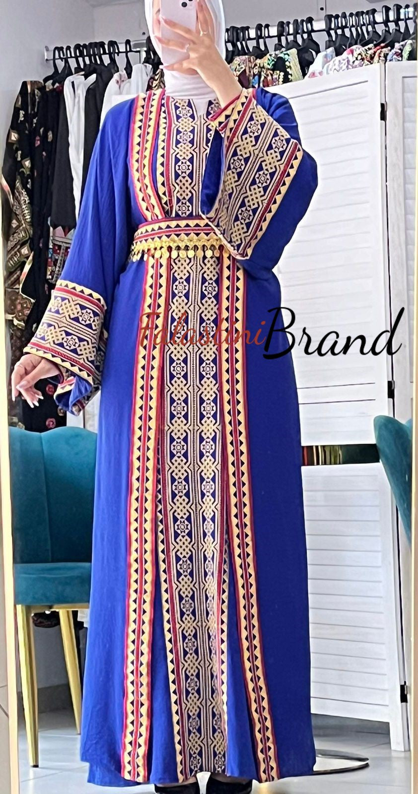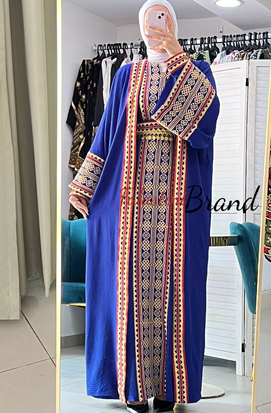 Royal Blue and Golden Embroidered Dress and Abaya Set