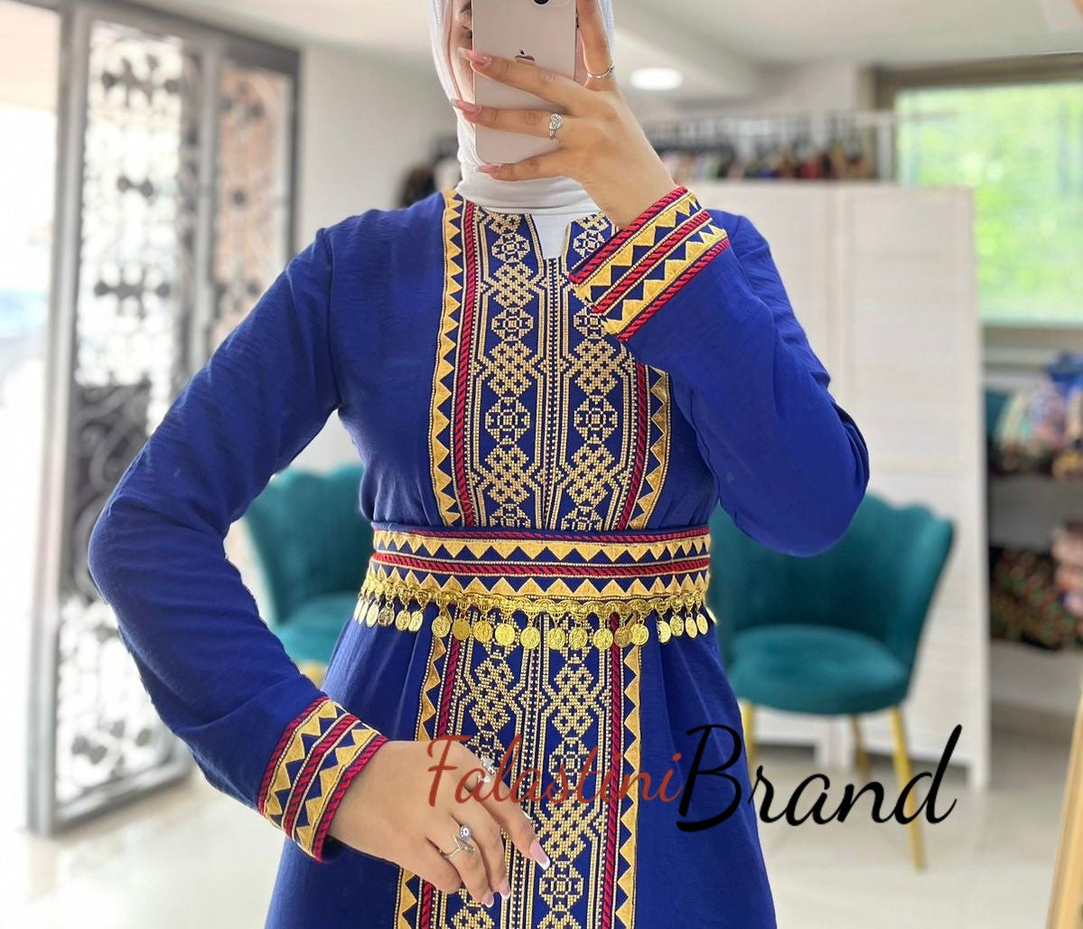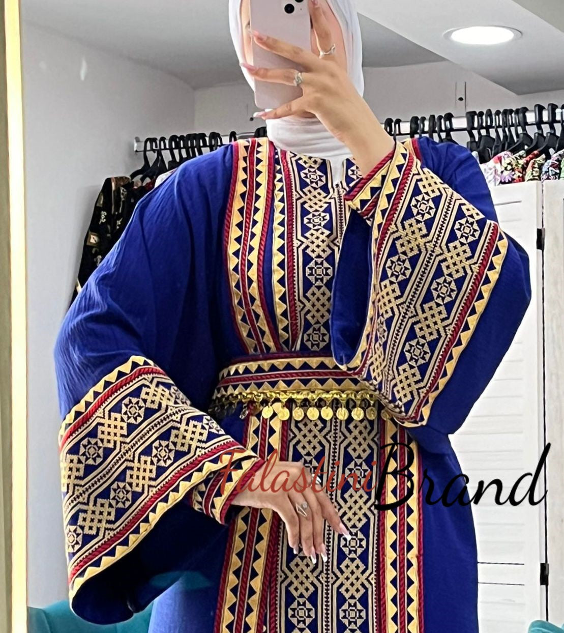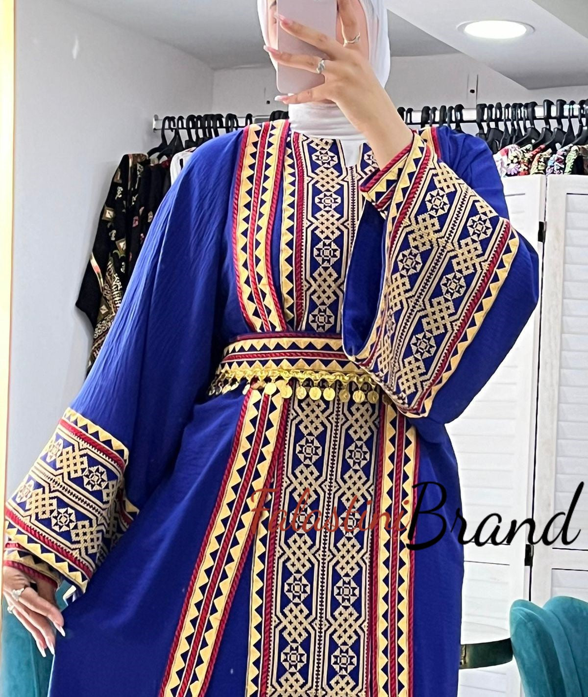 Royal Blue and Golden Embroidered Dress and Abaya Set