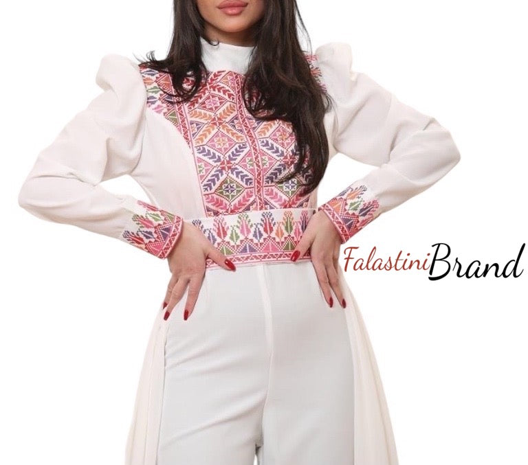 • Stylish white Palestinian jumpsuit dress