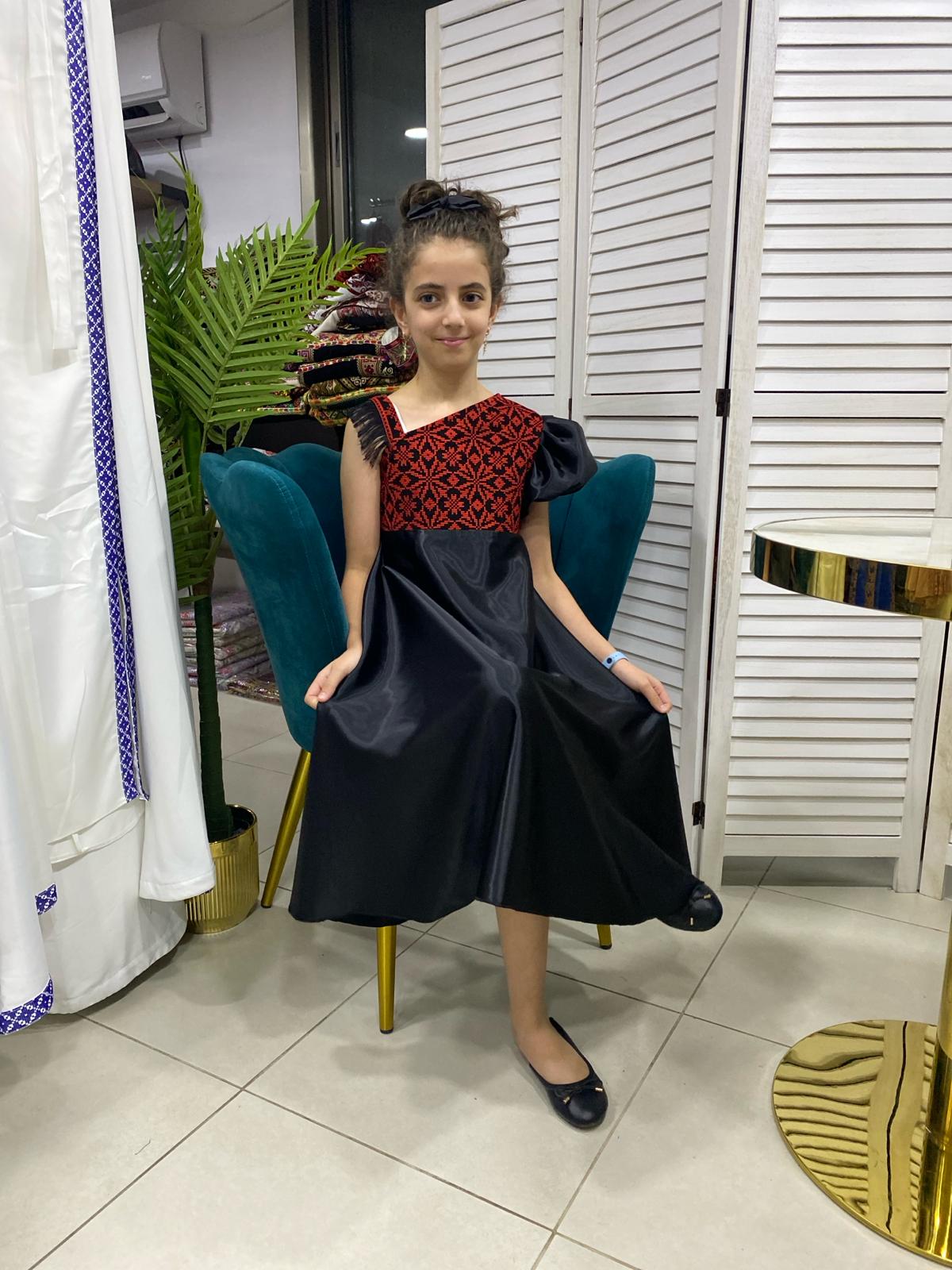 Little Girl Palestinian Embroidered Black Satin Unique Design Dress