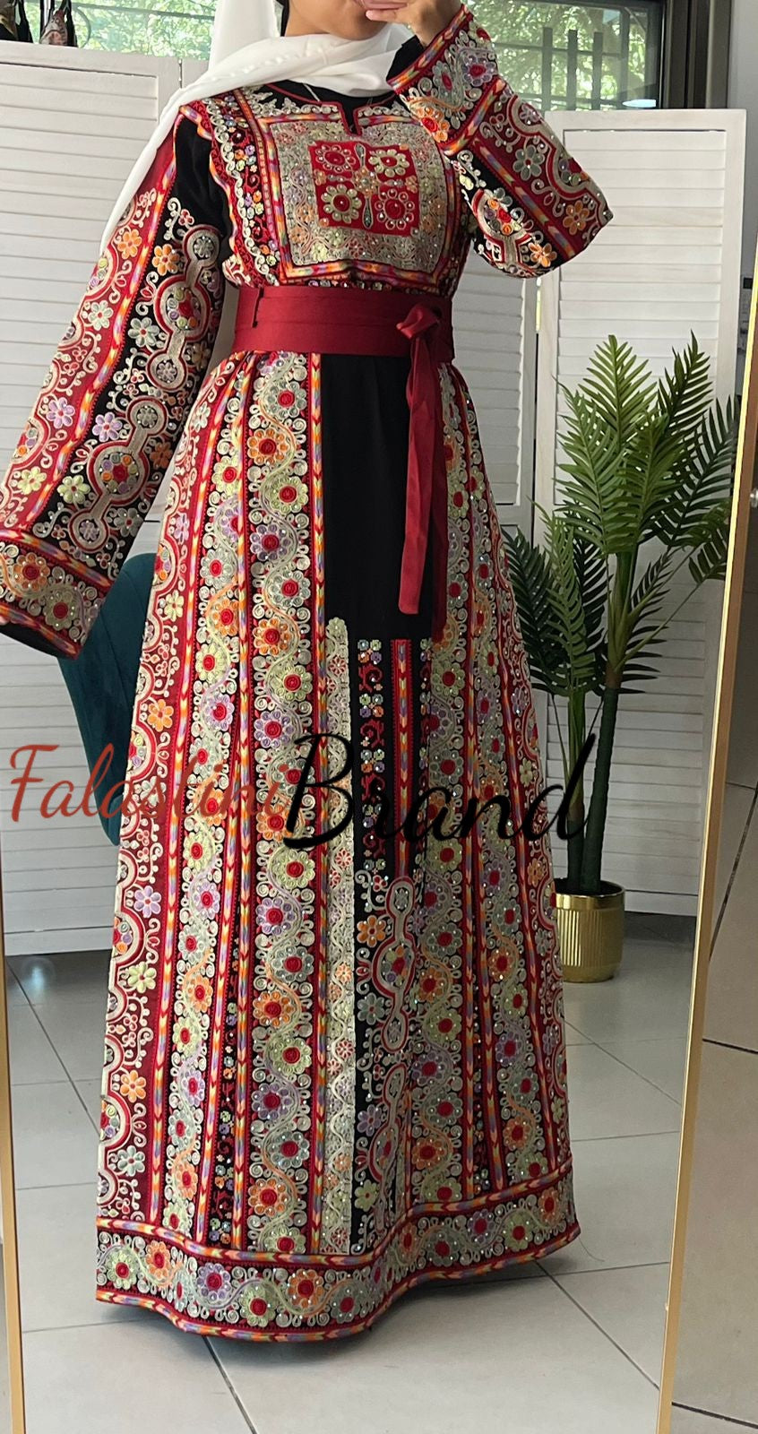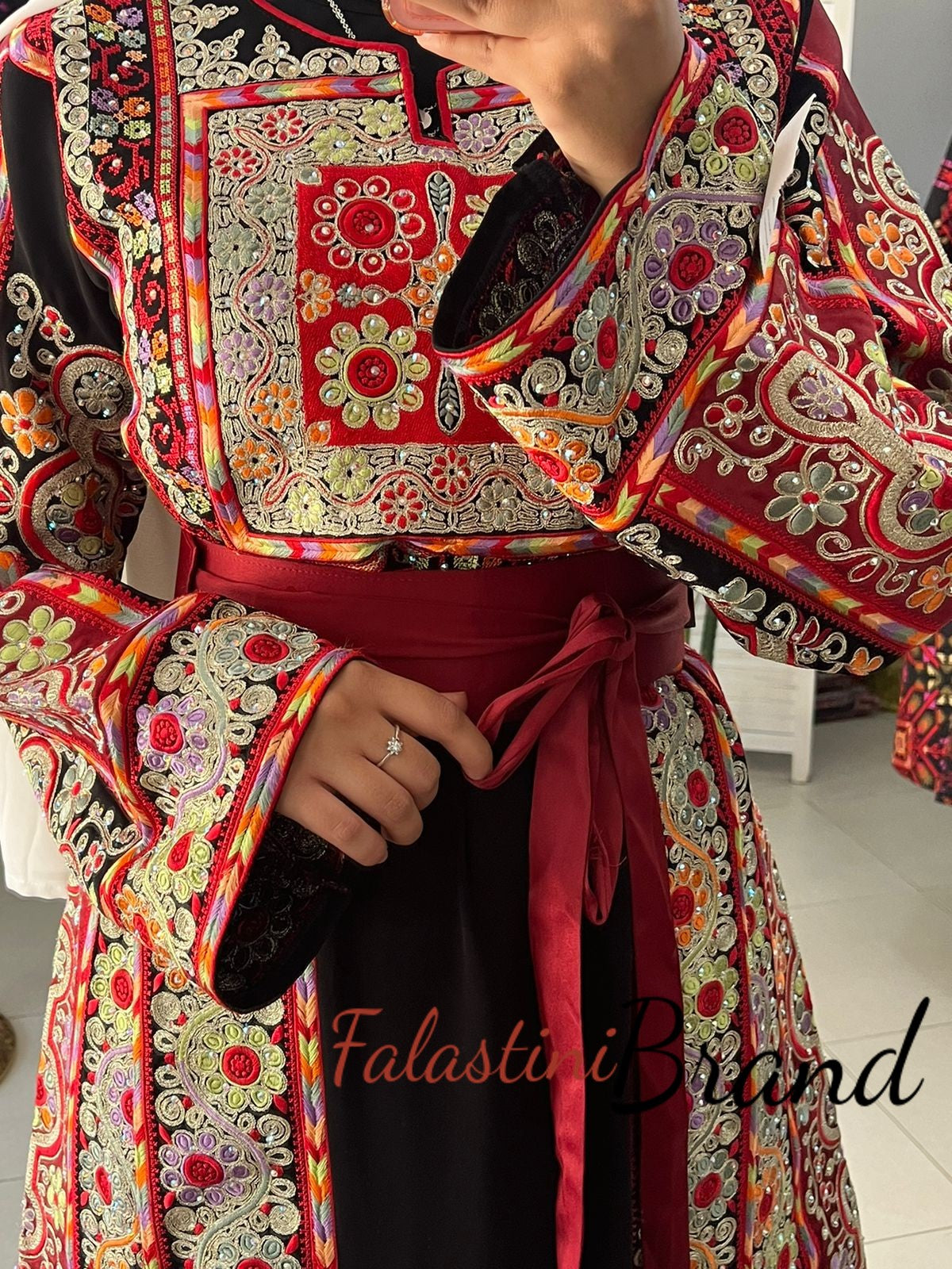 Elegant Black and Red Malak Palestinian embroidered dress